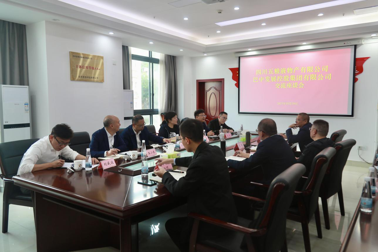 10月20日上午,四川五糧液物產(chǎn)有限公司副總經(jīng)理馮天煒一行來我公司開展業(yè)務合作交流,集團公司黨委副書記、總經(jīng)理沈鵬主持召開交流座談會。